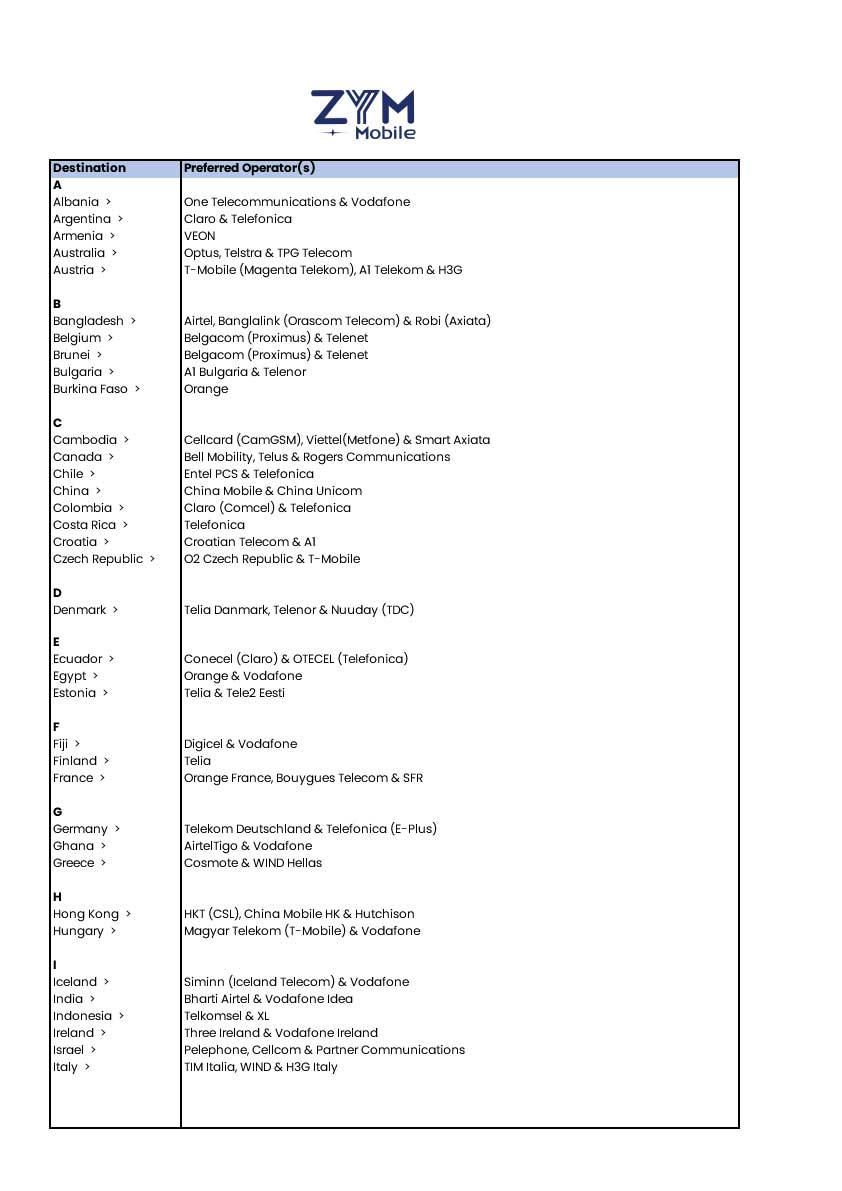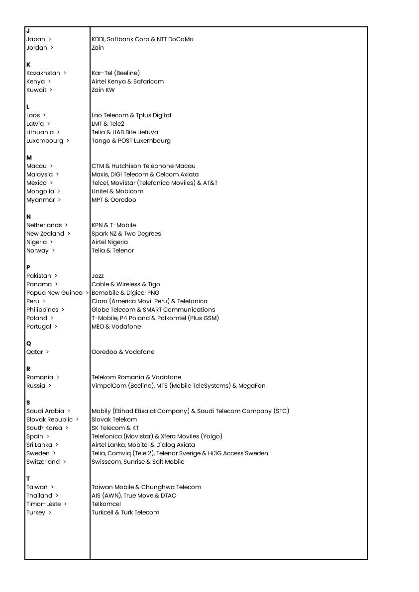 Connect to one of the telco partners on the list as soon as you arrive at your travel destination for the best roaming experience